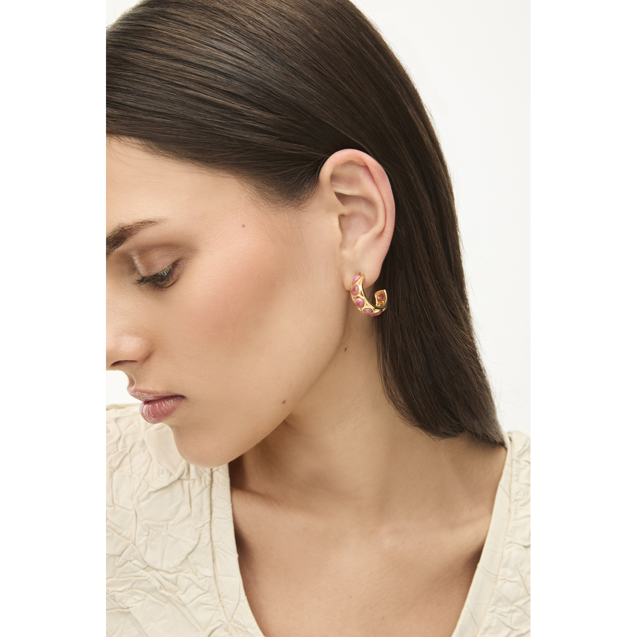pendientes de plata de la colección Dots de Durán Exquse con siete piedras cuarzo